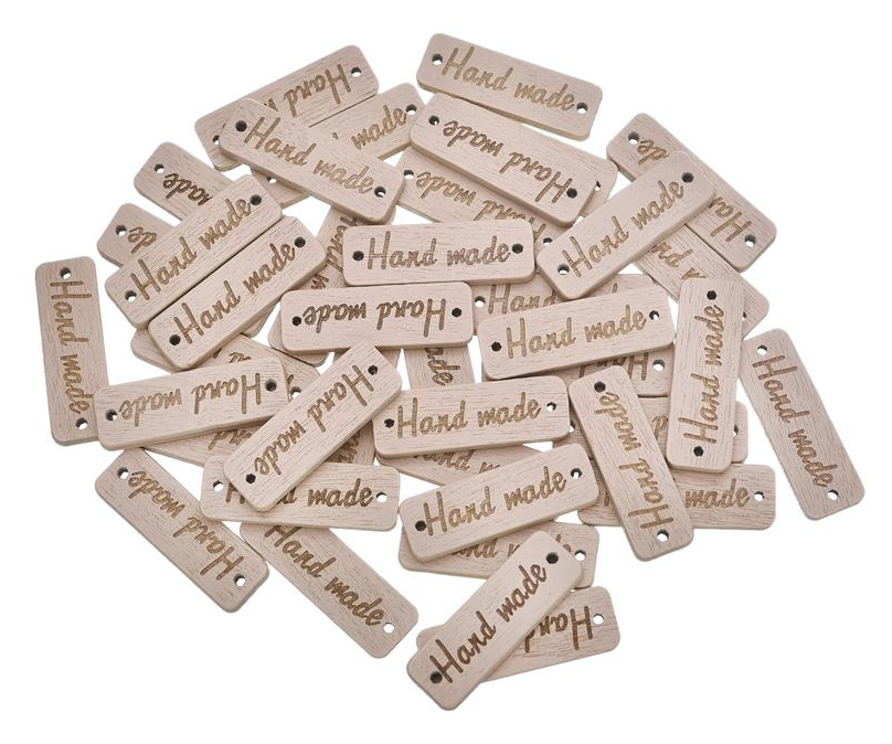 Avlange merker i størrelse 10x30 mm til å feste på klær og lignende.